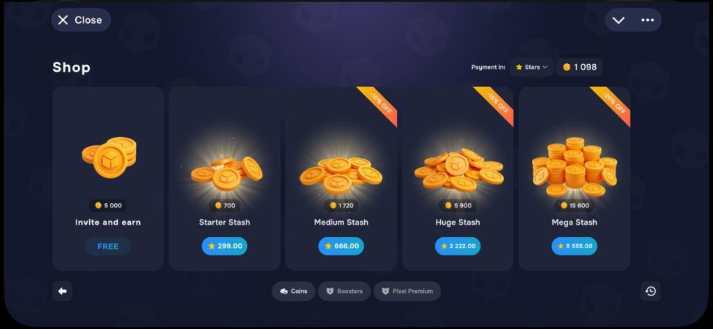 • use earned coins