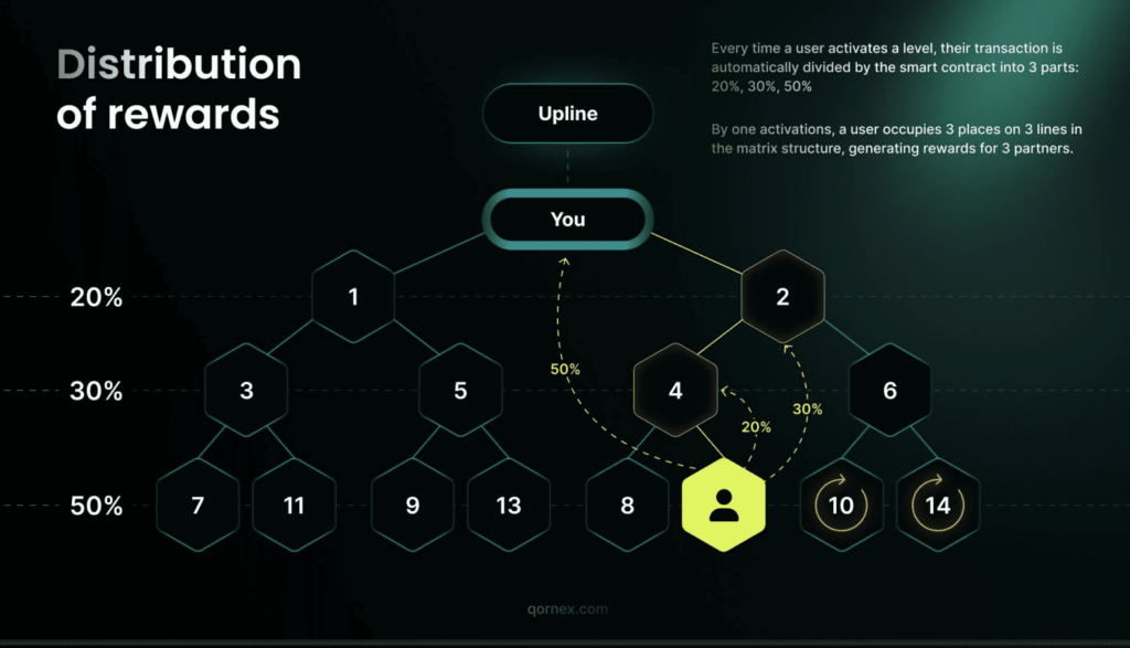 Each level functions independently, and rewards are automatically distributed upon activation. The matrix structure ensures fair distribution among users.